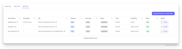Users can now discover the MCP server via the public endpoint (PROXY_BASE_URL/ui/model_hub_table)